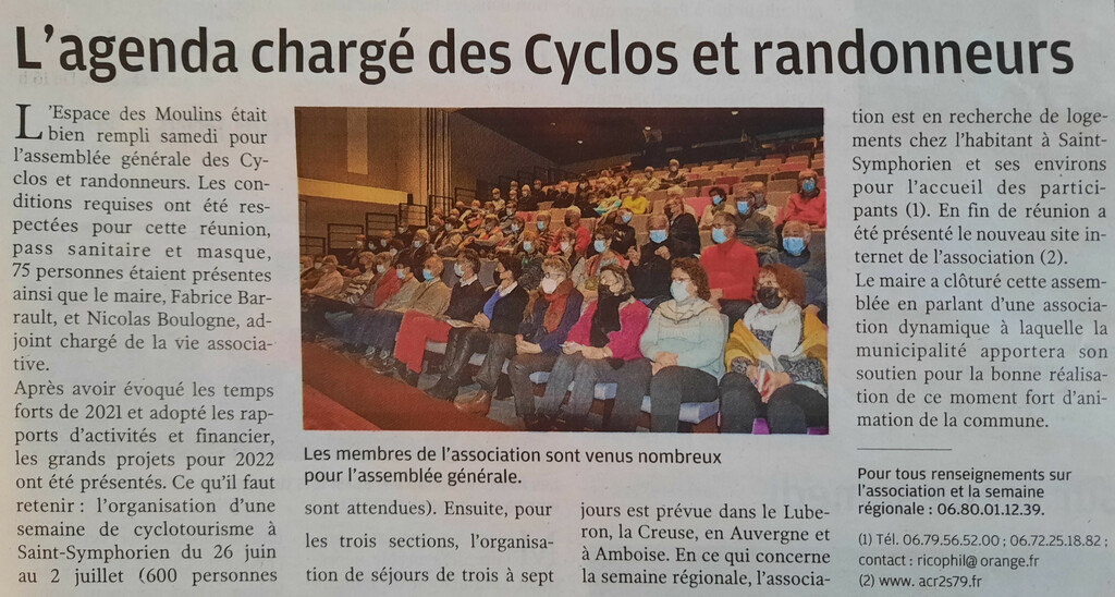 Assemblée générale 2022 à l'Espace des Moulins de St Symphorien 79